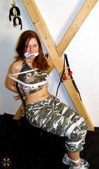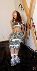 Military Zarah! - You as a little brave soldier? - This is a completely new outfit for our rare Bound-Girl. But of course the more beautiful. - What could be more obvious than missing a suitable bondage dressed up like this? - It is quickly implemented and a suitable color is finally selected from the bandanas lying around. - Now you are welcome to fight in your bonds and the gag is not tight at all ...
