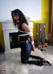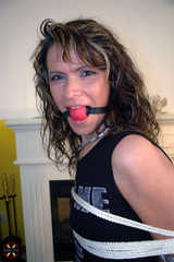 Jenna in schwarz gekleidet wurde wieder etwas fester gebunden. Danach schob Ihr der Boundmaster einen kleinen aber effektiven Ball in den Mund. Lecker anzusehen und Jenna konnte ein wenig in Ihren Fesseln kämpfen. -