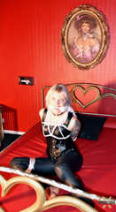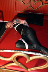 After the exciting date with the Boundmaster in the practice room, it is time to put the little Roxxxi to rest. - If possible, you should stay here, which is why the Boundmaster fixes you on the bed. -
